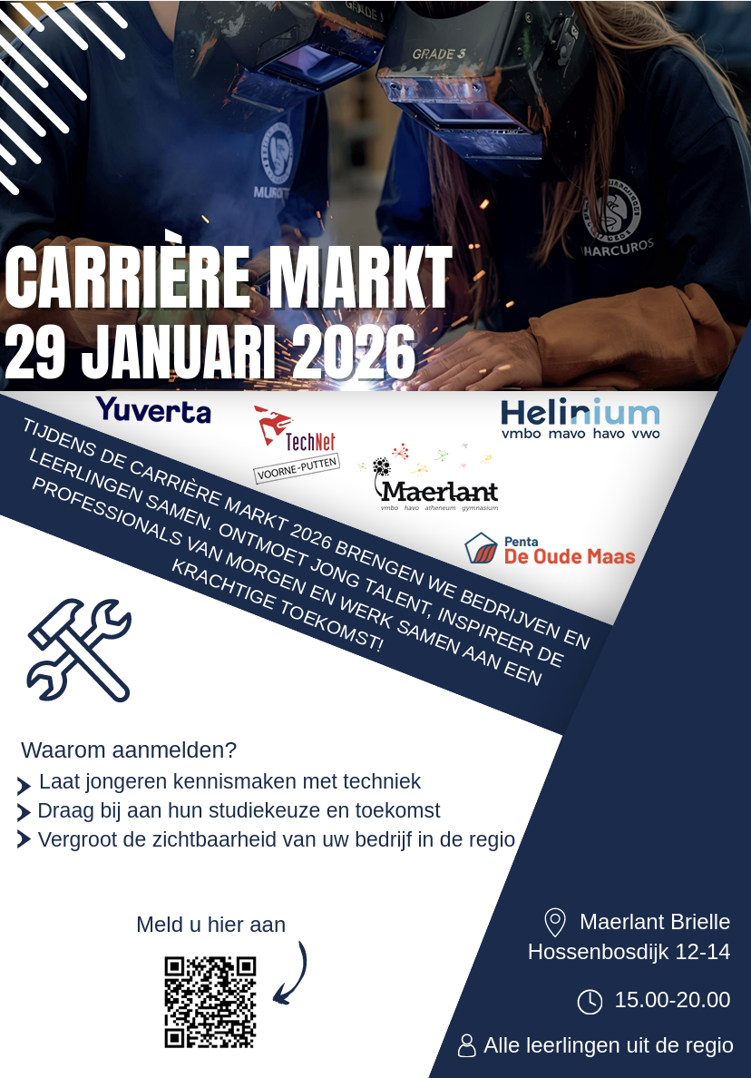 Op donderdag 29 januari 2026 organiseren we weer de Carrière markt op het Maerlant in Brielle.